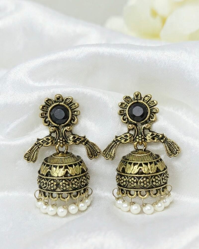 Antique Golden Oxidised Bird Motif